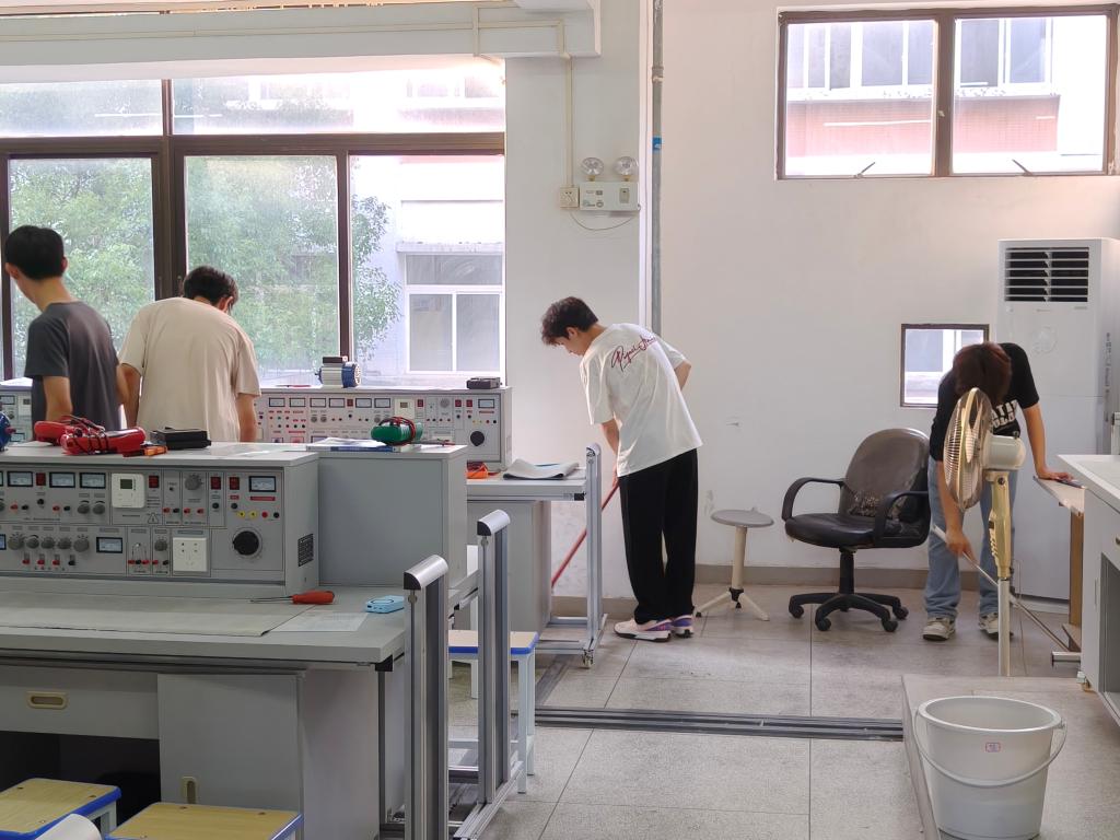 实训楼中,大家重点打扫设备周边、操作台面,不仅清除了杂物,还规范了工具摆放,为接下来的实践学习筑牢安全整洁的基础。
