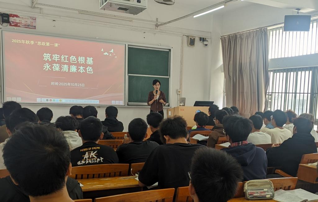 为弘扬伟大抗战精神,教育引导学生牢记嘱托、砥砺奋进,培养爱国主义情怀,增强廉洁自律意识,2025年10月23日,机电工程系党总支书记黄婷婷在教学楼C302为电气自动化技术专业学生讲授主题为“筑牢红色根基,永葆清廉本色”的思政第一课。