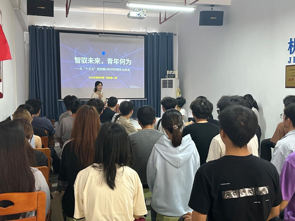 黄婷婷围绕“从‘十五五’规划看AI时代的理性与担当”这一主题,从“十五五”规划中的AI蓝图、AI发展伴生的风险与挑战以及大学生如何理性使用AI这三方面开展阐述,使同学们深刻理解“技术是一把犁,既可用于耕耘,也可用于破坏”,教育引导同学们保持好奇心和批判性思维,理性使用AI。